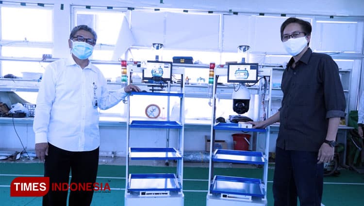 TIMES Bandung/(Kanan) Rektor ITS saat meluncurkan robot Raisa. (FOTO: Humas ITS/TIMES Indonesia)