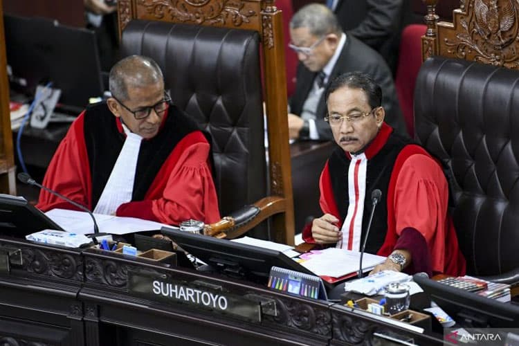 TIMES Bandung/Ketua Mahkamah Konstitusi (MK) Suhartoyo (kanan) bersama Wakil Ketua MK Saldi Isra memimpin sidang pengucapan putusan perkara dilanjutkan atau tidak (dismissal) sengketa Pilkada 2024 di Gedung Mahkamah Konstitusi, Jakarta, Rabu (5/2/2025). (ANTARA)