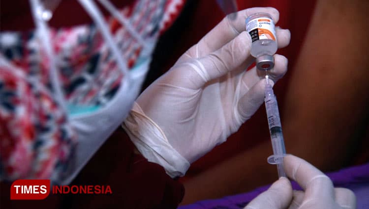 TIMES Bandung/Salah satu tenaga kesehatan saat mengisi dosis vaksin untuk disuntikkan. (FOTO: Adhitya Hendra/TIMES Indonesia)